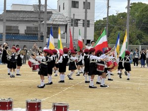 ミッキーのテーマソングとして広く知られている「ミッキーマウスマーチ」にあわせて元気に入場し、「黄色いリボン」では、色々な隊形やカラーガードで力強い演技をしています。Da-iCEの「ノンフィクションズ」では、アップテンポな曲のリズムに合わせて、きれいにそろったマスゲームになっています。