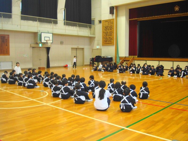 幼稚園に近い、錦小学校に年長児が訪問しました。