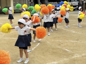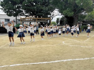 子供たちは運動会に向けて、毎日楽しく練習に励んでいます。曲がかかると元気よく踊り出し、当日はとびきりの笑顔をお見せします。
