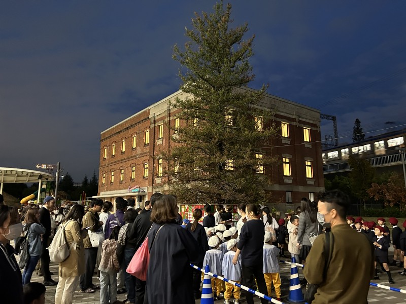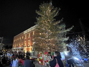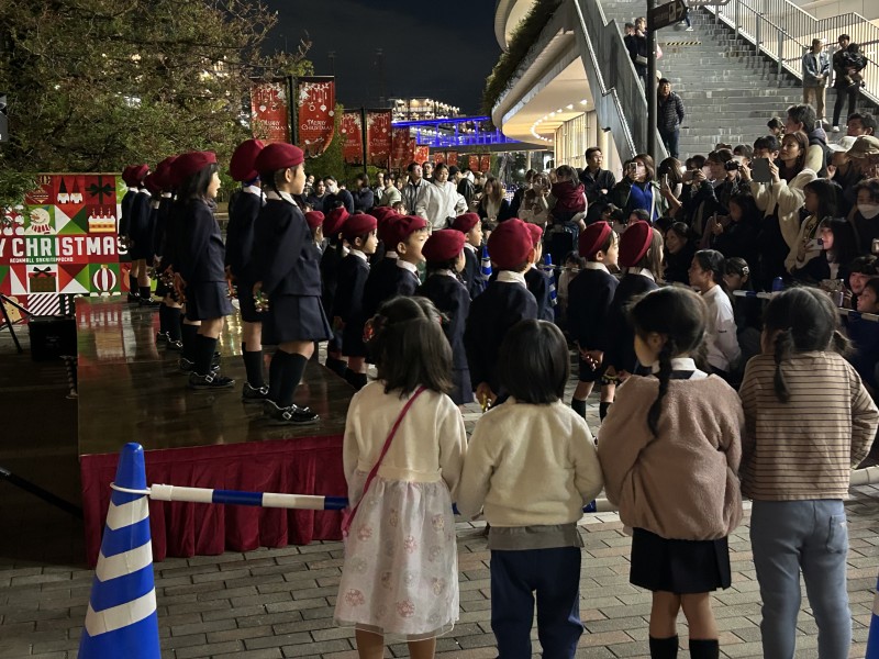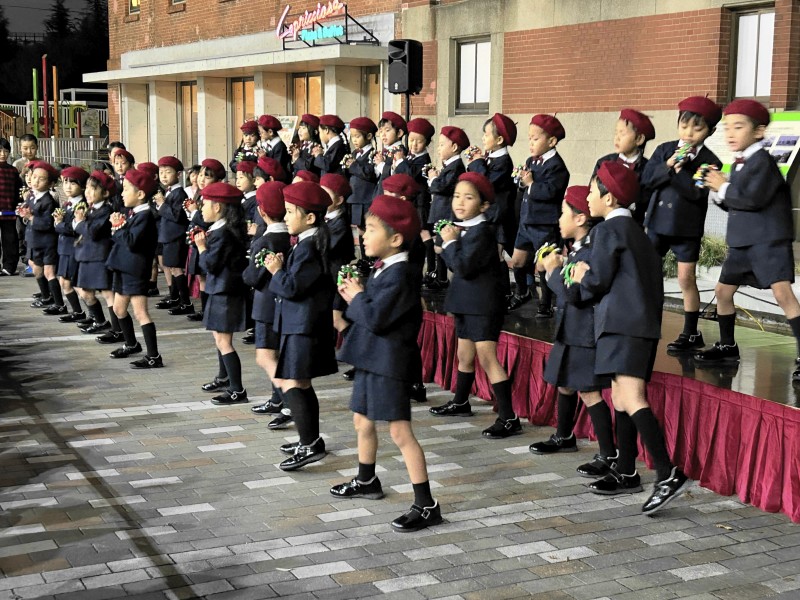 イオンモール堺鉄砲町クリスマスイルミネーション点灯式に年長児が参加し、クリスマスソングメドレーを合唱しました。