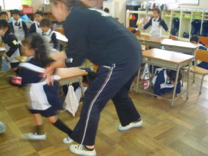 子どもたちには、訓練時だけでなく、いつでも身を守る行動を取れるよう指導していきたいと思います。