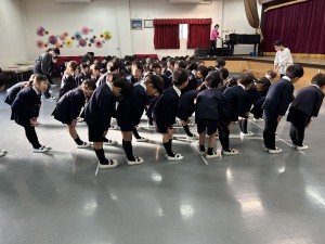 今日で2学期も終了です。終業式のあとに、みんなでプリンをたべました。